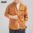 HIQOR New Mens Vintage Shirt Male Lone Sleeve Cargo Shirts 100% Cotton Casual Solid Shirt Male Pocket Work Shirt Man Clothing